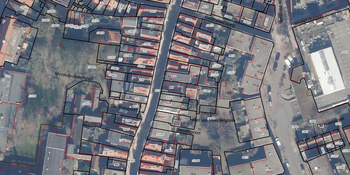 Het adres ligt op het perceel HLM01-D-515, dat zich in de kadastrale gemeente Haarlem bevindt. Het perceel is kleiner dan gemiddeld in Haarlem. Het perceel is 78 m² groot, terwijl het gemiddelde ligt op 328,19 m². Het grootste perceel in de kadastrale gemeente is 13,9 ha. Het kleinste perceel heeft een oppervlakte van 0 m². Op het perceel zijn 2 adressen aanwezig. De huidige grenzen van het perceel zijn digitaal in de Basisregistratie Kadaster (BRK) geregistreerd op 03-12-1997.