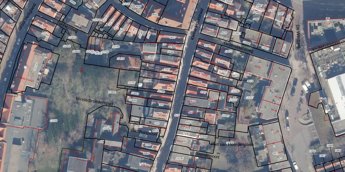 Kleine Houtstraat 88 is gelegen op kadastraal perceel HLM01D10798. Deze kadastrale aanduiding is uniek en wordt gebruikt door het Kadaster om eigendomsrechten en andere zakelijke rechten vast te leggen. Het perceel maakt onderdeel uit van de kadastrale gemeente Haarlem.