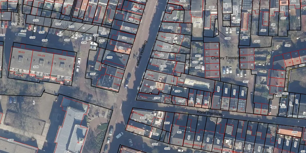 Kleine Houtweg 13-A is gelegen op kadastraal perceel HLM01K2737. Deze kadastrale aanduiding is uniek en wordt gebruikt door het Kadaster om eigendomsrechten en andere zakelijke rechten vast te leggen. Het perceel maakt onderdeel uit van de kadastrale gemeente Haarlem.