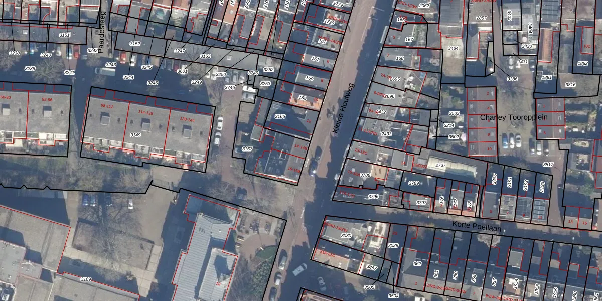 Het perceel waarop Kleine Houtweg 14 staat heeft een oppervlakte van 430 m². Dit is een groot perceel. De perceeloppervlakte wordt geregistreerd door het Kadaster. Gedetailleerde informatie over de maten van dit perceel kunt u vinden in het rapport Kadastrale kaart met maatvoering van Kleine Houtweg 14.