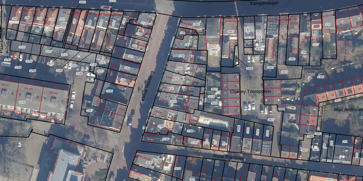Kleine Houtweg 9-A is gelegen op kadastraal perceel HLM01K2432. Deze kadastrale aanduiding is uniek en wordt gebruikt door het Kadaster om eigendomsrechten en andere zakelijke rechten vast te leggen. Het perceel maakt onderdeel uit van de kadastrale gemeente Haarlem.
