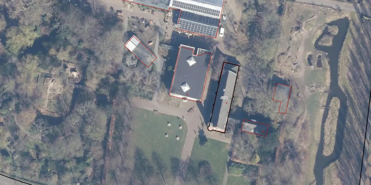 Het perceel waarop Kleverlaan 11 staat heeft een oppervlakte van 4,2 ha. Dit is een zeer groot perceel. De perceeloppervlakte wordt geregistreerd door het Kadaster. Gedetailleerde informatie over de maten van dit perceel kunt u vinden in het rapport Kadastrale kaart met maatvoering van Kleverlaan 11.