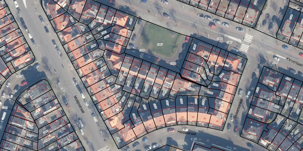 Het perceel waarop Kleverlaan 148 staat heeft een oppervlakte van 142 m². Dit is een middelgroot perceel. De perceeloppervlakte wordt geregistreerd door het Kadaster. Gedetailleerde informatie over de maten van dit perceel kunt u vinden in het rapport Kadastrale kaart met maatvoering van Kleverlaan 148.