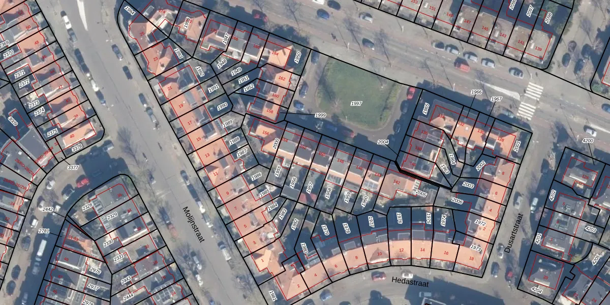 Het adres ligt op het perceel HLM01-G-1956, dat zich in de kadastrale gemeente Haarlem bevindt. De gemiddelde perceelgrootte in Haarlem is 328,17 m². Dit perceel is kleiner: de perceeloppervlakte bedraagt 141 m². Het grootste perceel in de kadastrale gemeente is 13,9 ha. Het kleinste perceel heeft een oppervlakte van 0 m². Op het perceel bevinden zich geen andere adressen. De huidige grenzen van het perceel zijn digitaal in de Basisregistratie Kadaster (BRK) geregistreerd op 30-08-2001.