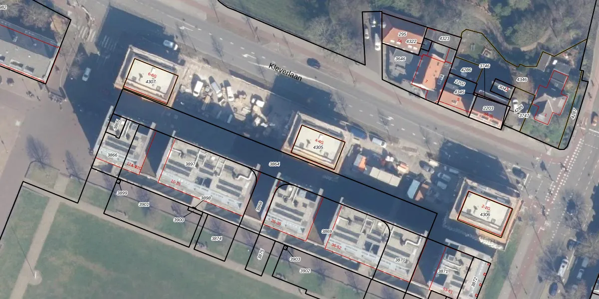 Kleverlaan 4-G is gelegen op kadastraal perceel HLM01G4305. Deze kadastrale aanduiding is uniek en wordt gebruikt door het Kadaster om eigendomsrechten en andere zakelijke rechten vast te leggen. Het perceel maakt onderdeel uit van de kadastrale gemeente Haarlem.