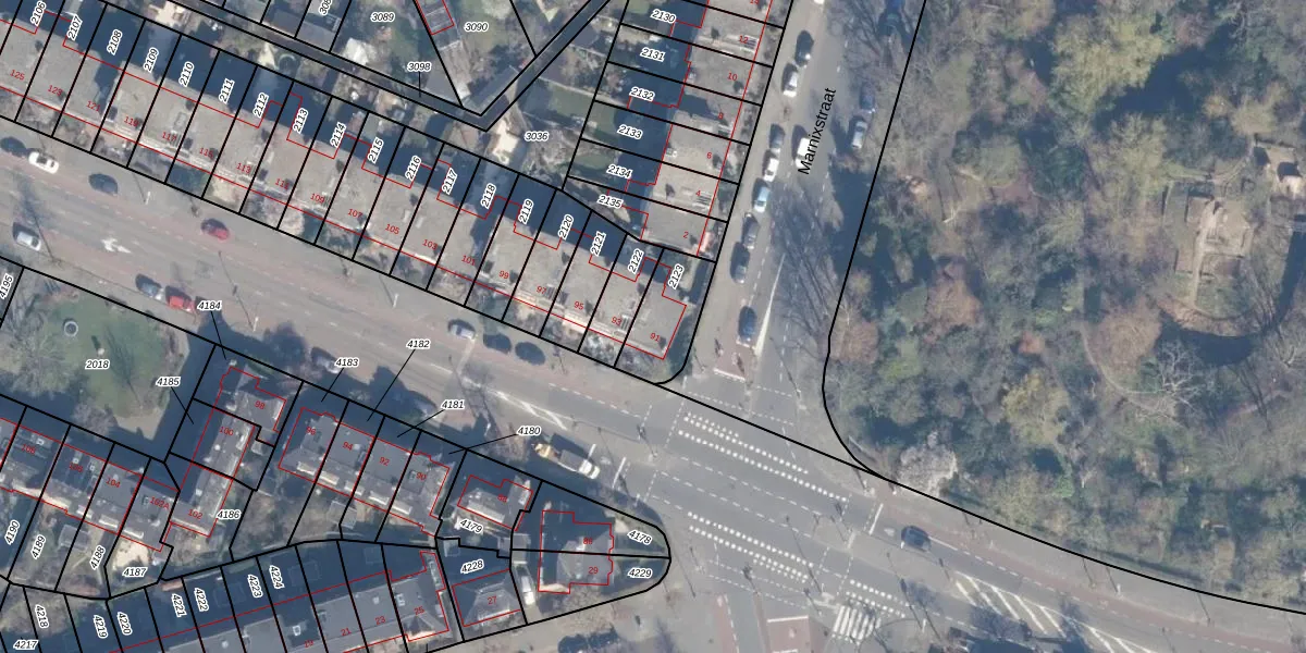 Gebruik de zoekbalk of klik op een perceel voor informatie over de adressen binnen dit perceel.