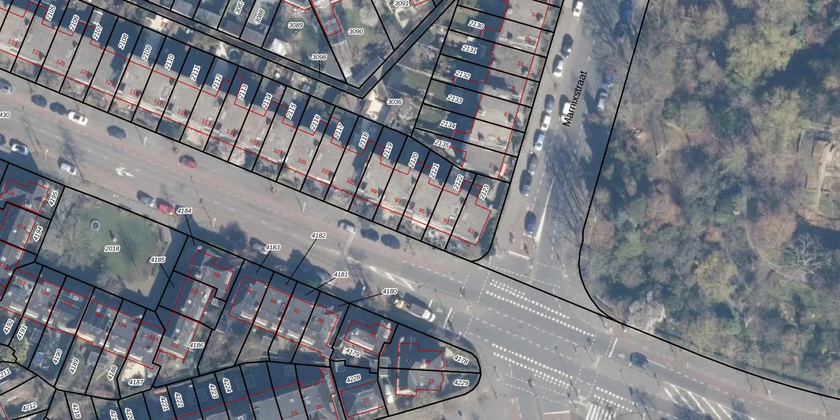 Gebruik de zoekbalk of klik op een perceel voor informatie over de adressen binnen dit perceel.