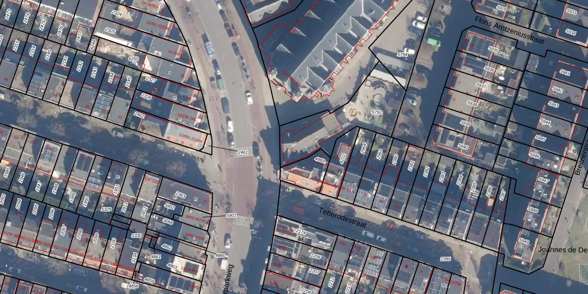 Het adres ligt op het perceel HLM01-A-5792, dat zich in de kadastrale gemeente Haarlem bevindt. Het perceel is met 649 m² relatief groot. Het gemiddelde ligt in de kadastrale gemeente Haarlem op 328,19 m². Het kleinste perceel in de kadastrale gemeente is 0 m² groot. De grootste perceeloppervlakte is 13,9 ha. Op het perceel bevinden zich geen andere adressen. De laatste wijziging in het de Basisregistratie Kadaster (BRK) was op 17-10-2011.