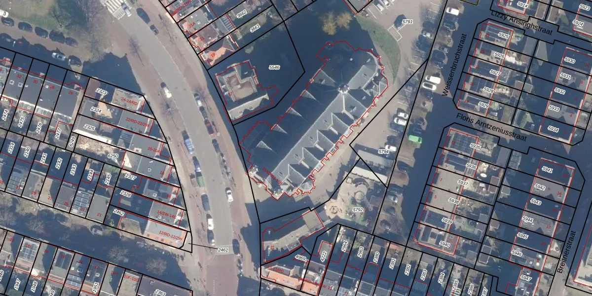 Het adres is gelegen op perceel 5791 in de sectie A en de kadastrale gemeente Haarlem. De kadastrale aanduiding is aldus HLM01-A-5791. De gemiddelde perceeloppervlakte in de kadastrale gemeente Haarlem is 328,19 m². Dit perceel is met zijn 3002 m² dus groter dan gemiddeld. De grootste perceeloppervlakte in de kadastrale gemeente is 13,9 ha. De kleinste oppervlakte bedraagt 0 m². Op het perceel zijn 62 adressen aanwezig. In de Basisregistratie Kadaster (BRK) werden de grenzen van het perceel geregistreerd op 26-08-2024.