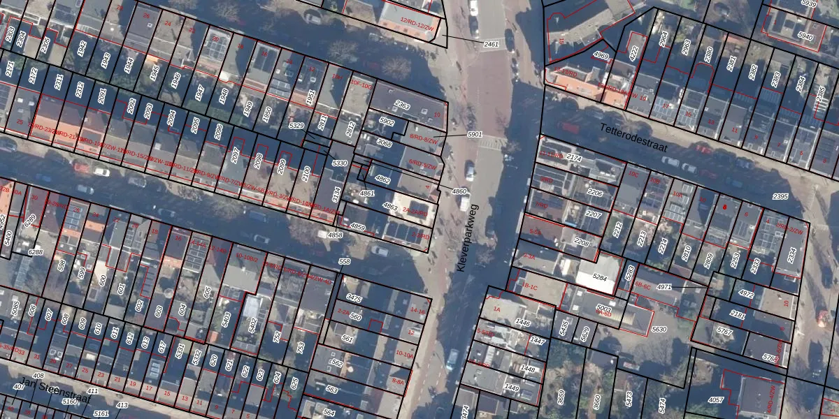 Kleverparkweg 2-A is gelegen op kadastraal perceel HLM01A4863. Deze kadastrale aanduiding is uniek en wordt gebruikt door het Kadaster om eigendomsrechten en andere zakelijke rechten vast te leggen. Het perceel maakt onderdeel uit van de kadastrale gemeente Haarlem.