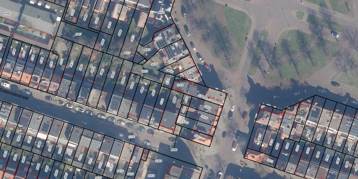 Het adres is gelegen op perceel 5264 in de sectie A en de kadastrale gemeente Haarlem. De kadastrale aanduiding is aldus HLM01-A-5264. Het perceel is kleiner dan gemiddeld in Haarlem. Het perceel is 223 m² groot, terwijl het gemiddelde ligt op 328,17 m². Het kleinste perceel in de kadastrale gemeente is 0 m² groot. De grootste perceeloppervlakte is 13,9 ha. Er zijn 4 adressen aanwezig op het perceel. In de Basisregistratie Kadaster (BRK) werden de grenzen van het perceel geregistreerd op 17-08-2001.