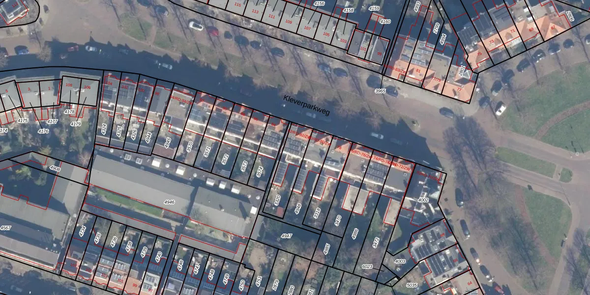 Het perceel waarop Kleverparkweg 82-RD staat heeft een oppervlakte van 231 m². Dit is een middelgroot perceel. De perceeloppervlakte wordt geregistreerd door het Kadaster. Gedetailleerde informatie over de maten van dit perceel kunt u vinden in het rapport Kadastrale kaart met maatvoering van Kleverparkweg 82-RD.