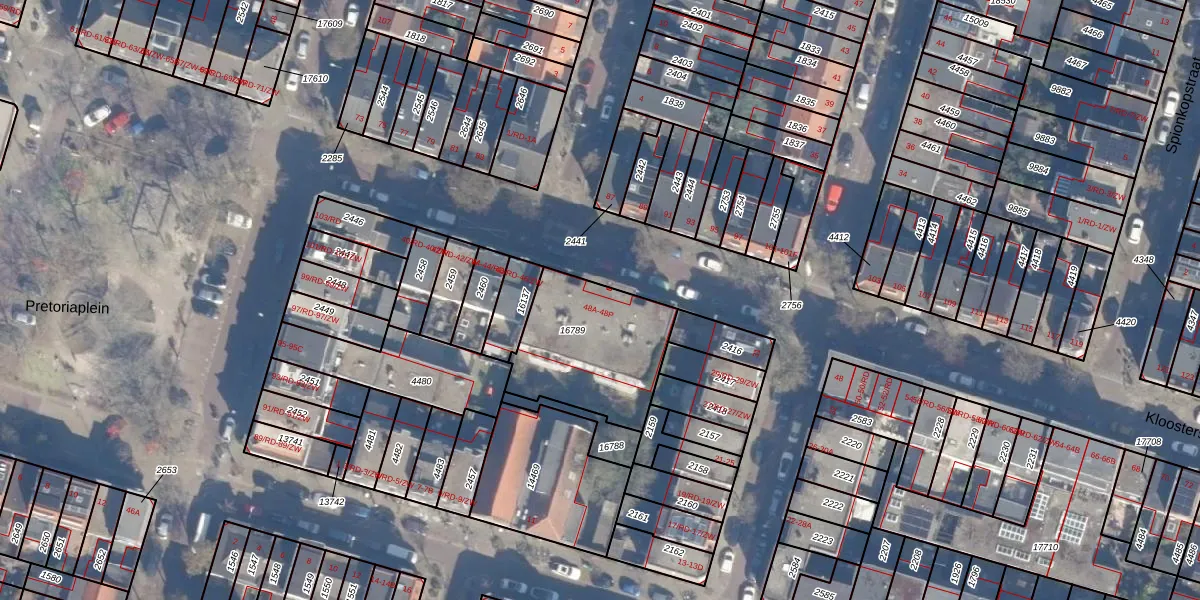 Het perceel waarop Kloosterstraat 48-A staat heeft een oppervlakte van 508 m². Dit is een groot perceel. De perceeloppervlakte wordt geregistreerd door het Kadaster. Gedetailleerde informatie over de maten van dit perceel kunt u vinden in het rapport Kadastrale kaart met maatvoering van Kloosterstraat 48-A.