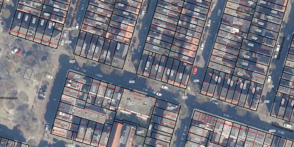 Kloosterstraat 89 is gelegen op kadastraal perceel STN01B2442. Deze kadastrale aanduiding is uniek en wordt gebruikt door het Kadaster om eigendomsrechten en andere zakelijke rechten vast te leggen. Het perceel maakt onderdeel uit van de kadastrale gemeente Schoten.