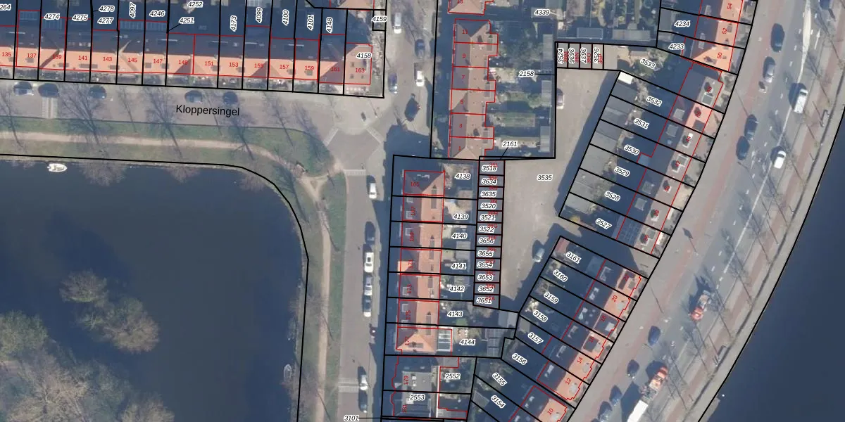 Gebruik de zoekbalk of klik op een perceel voor informatie over de adressen binnen dit perceel.