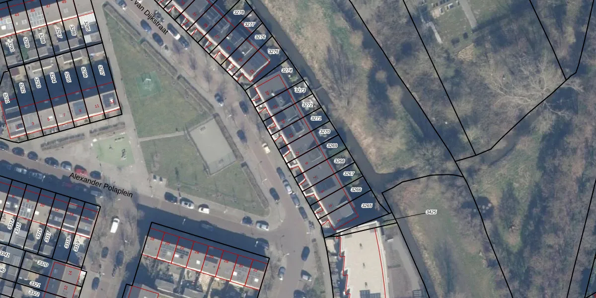 Het adres is gelegen op perceel 3270 in de sectie P en de kadastrale gemeente Haarlem. De kadastrale aanduiding is aldus HLM02-P-3270. Het perceel is 107 m² groot. Dat is kleiner dan de gemiddelde perceeloppervlakte in Haarlem, dat op 1125,79 m² ligt. Het kleinste perceel in de kadastrale gemeente is 0 m² groot. De grootste perceeloppervlakte is 46,4 ha. Op het perceel bevinden zich geen andere adressen. De huidige grenzen van het perceel zijn digitaal in de Basisregistratie Kadaster (BRK) geregistreerd op 26-08-2009.