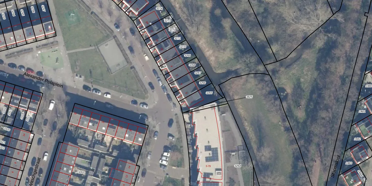 Gebruik de zoekbalk of klik op een perceel voor informatie over de adressen binnen dit perceel.