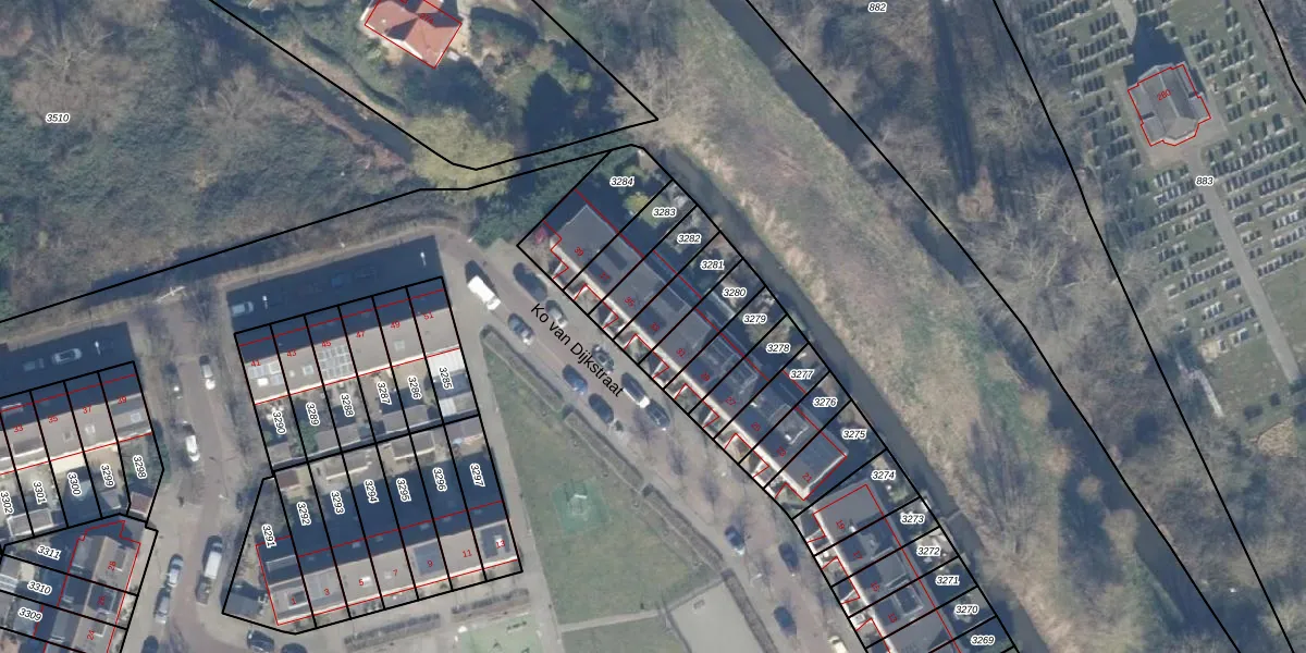 Ko van Dijkstraat 33 is gelegen op kadastraal perceel HLM02P3281. Deze kadastrale aanduiding is uniek en wordt gebruikt door het Kadaster om eigendomsrechten en andere zakelijke rechten vast te leggen. Het perceel maakt onderdeel uit van de kadastrale gemeente Haarlem.