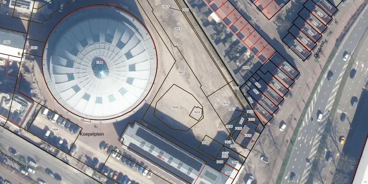 Het perceel waarop Koepelplein 181 staat heeft een oppervlakte van 415 m². Dit is een groot perceel. De perceeloppervlakte wordt geregistreerd door het Kadaster. Gedetailleerde informatie over de maten van dit perceel kunt u vinden in het rapport Kadastrale kaart met maatvoering van Koepelplein 181.