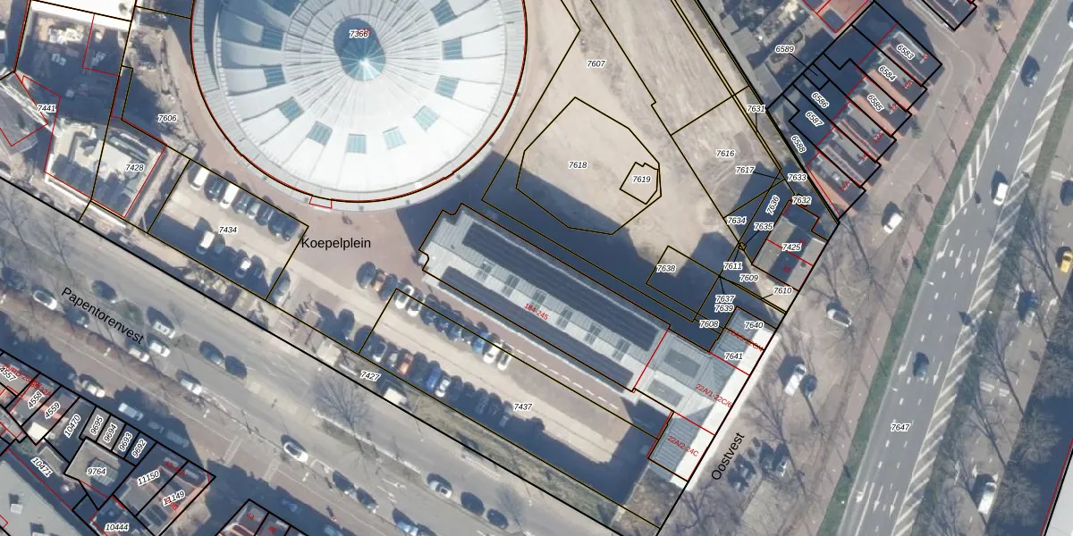 Het perceel waarop Koepelplein 201 staat heeft een oppervlakte van 1033 m². Dit is een zeer groot perceel. De perceeloppervlakte wordt geregistreerd door het Kadaster. Gedetailleerde informatie over de maten van dit perceel kunt u vinden in het rapport Kadastrale kaart met maatvoering van Koepelplein 201.