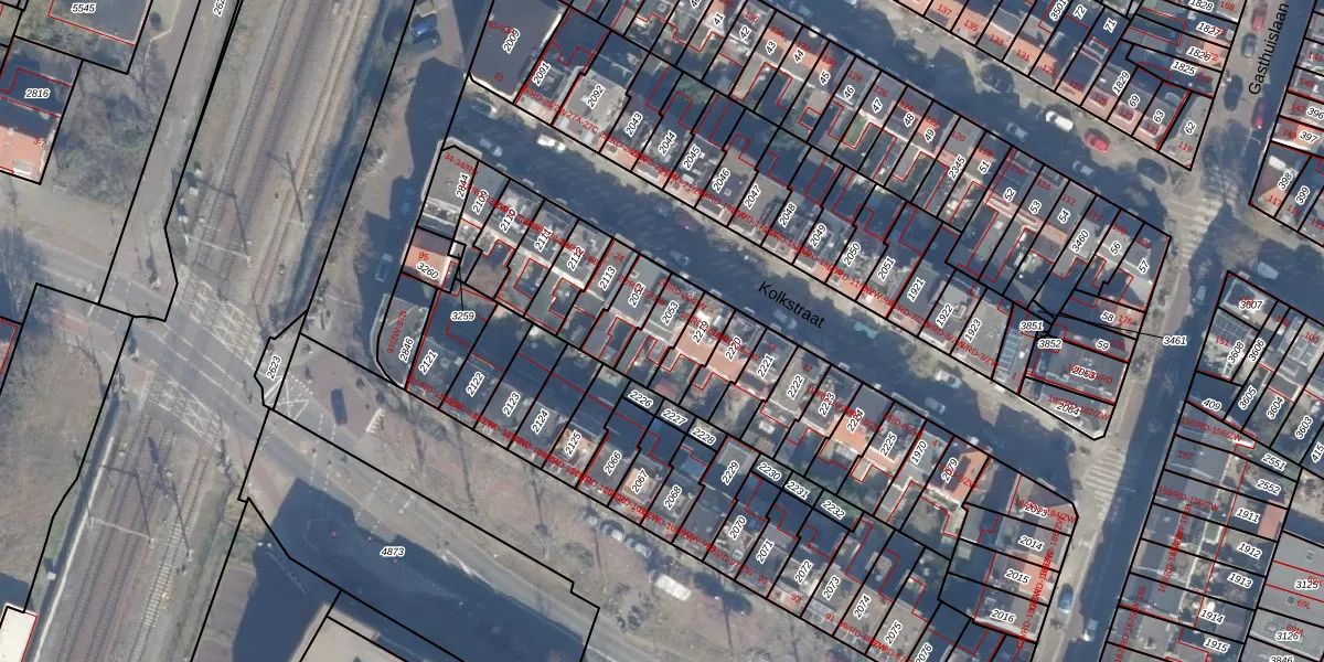 Kolkstraat 20-RD is gelegen op kadastraal perceel HLM01H2053. Deze kadastrale aanduiding is uniek en wordt gebruikt door het Kadaster om eigendomsrechten en andere zakelijke rechten vast te leggen. Het perceel maakt onderdeel uit van de kadastrale gemeente Haarlem.