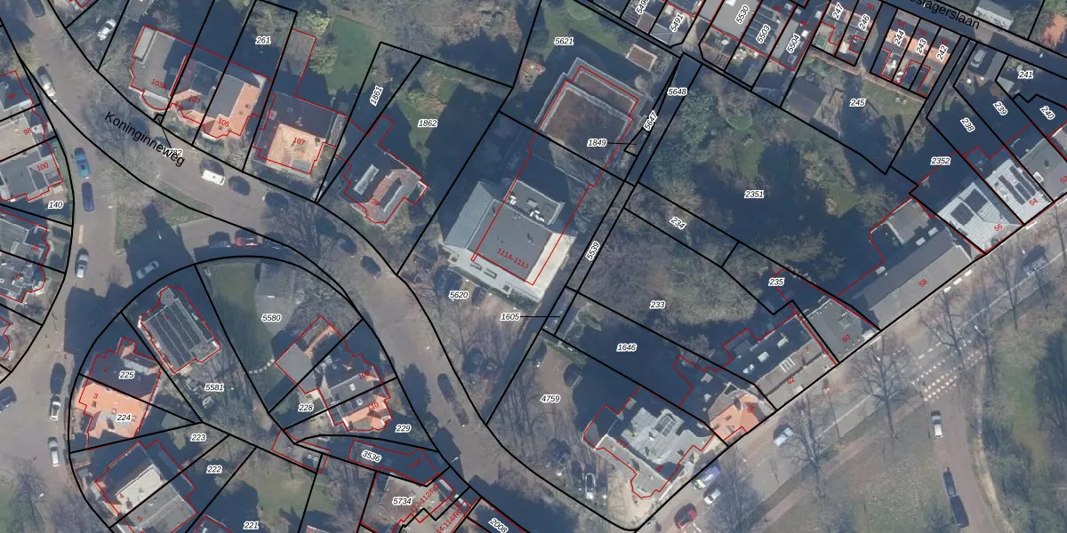 Koninginneweg 111-A is gelegen op kadastraal perceel HLM01I5620. Deze kadastrale aanduiding is uniek en wordt gebruikt door het Kadaster om eigendomsrechten en andere zakelijke rechten vast te leggen. Het perceel maakt onderdeel uit van de kadastrale gemeente Haarlem.