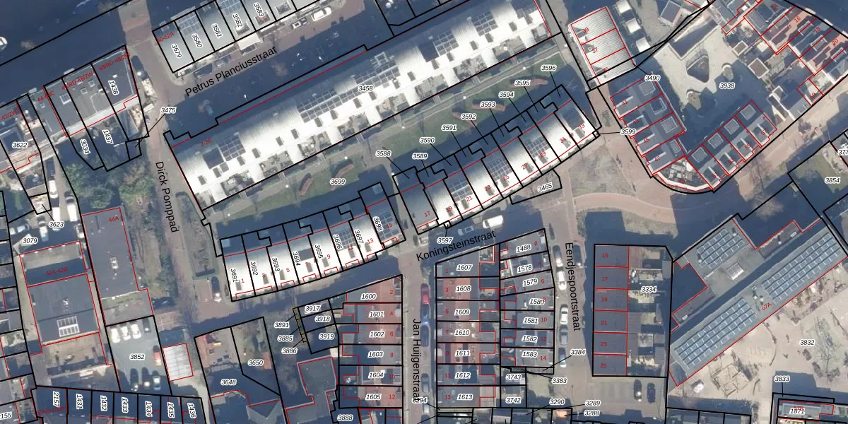 Het perceel waarop Koningsteinstraat 17 staat heeft een oppervlakte van 84 m². Dit is een klein perceel. De perceeloppervlakte wordt geregistreerd door het Kadaster. Gedetailleerde informatie over de maten van dit perceel kunt u vinden in het rapport Kadastrale kaart met maatvoering van Koningsteinstraat 17.