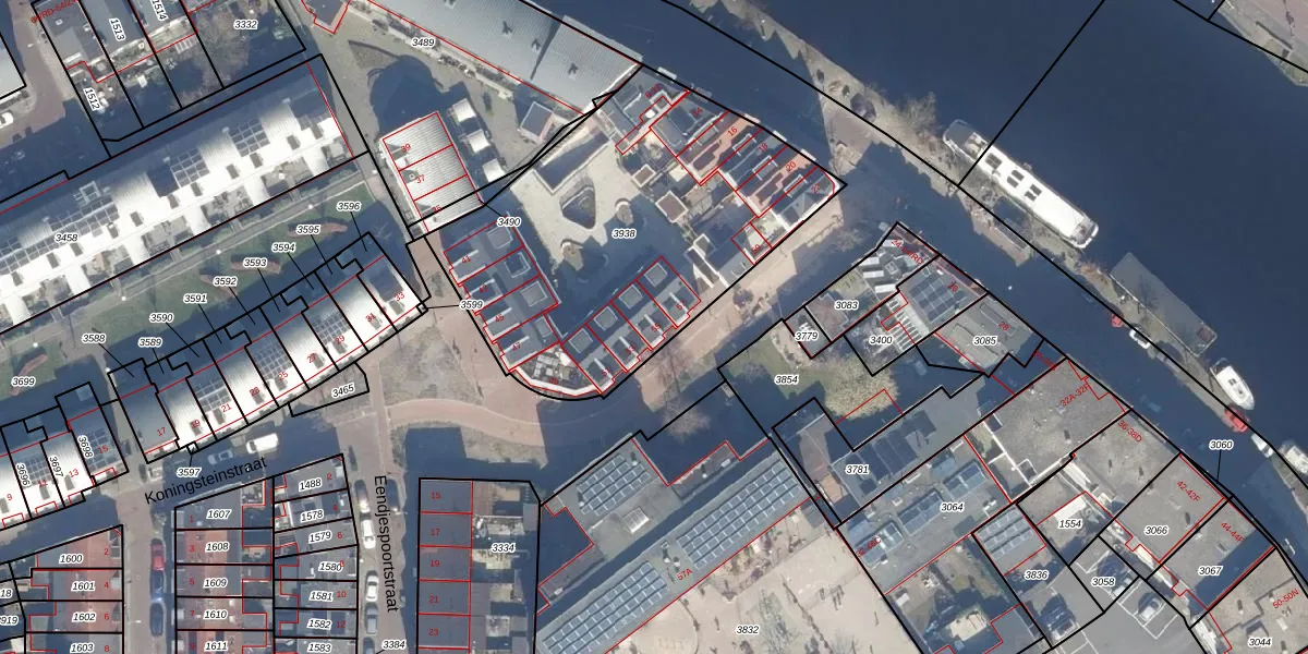 Het perceel waarop Koningsteinstraat 55 staat heeft een oppervlakte van 1745 m². Dit is een zeer groot perceel. De perceeloppervlakte wordt geregistreerd door het Kadaster. Gedetailleerde informatie over de maten van dit perceel kunt u vinden in het rapport Kadastrale kaart met maatvoering van Koningsteinstraat 55.