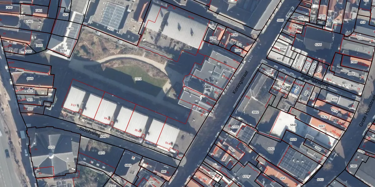 Het perceel waarop Koningstraat 20-B staat heeft een oppervlakte van 5275 m². Dit is een zeer groot perceel. De perceeloppervlakte wordt geregistreerd door het Kadaster. Gedetailleerde informatie over de maten van dit perceel kunt u vinden in het rapport Kadastrale kaart met maatvoering van Koningstraat 20-B.