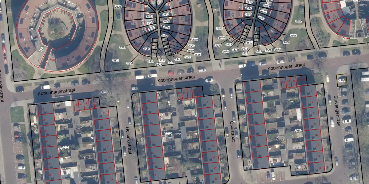 Het perceel waarop Kopenhagenstraat 14 staat heeft een oppervlakte van 2415 m². Dit is een zeer groot perceel. De perceeloppervlakte wordt geregistreerd door het Kadaster. Gedetailleerde informatie over de maten van dit perceel kunt u vinden in het rapport Kadastrale kaart met maatvoering van Kopenhagenstraat 14.