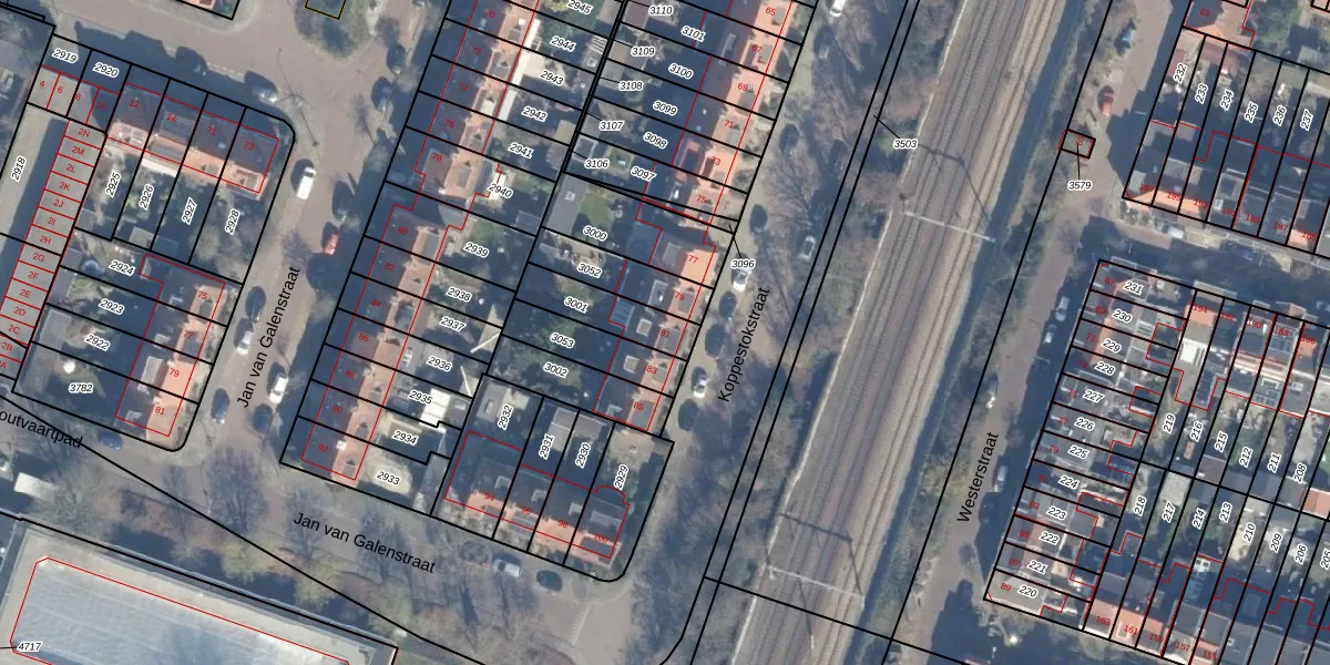 Koppestokstraat 81 is gelegen op kadastraal perceel HLM02T3001. Deze kadastrale aanduiding is uniek en wordt gebruikt door het Kadaster om eigendomsrechten en andere zakelijke rechten vast te leggen. Het perceel maakt onderdeel uit van de kadastrale gemeente Haarlem.