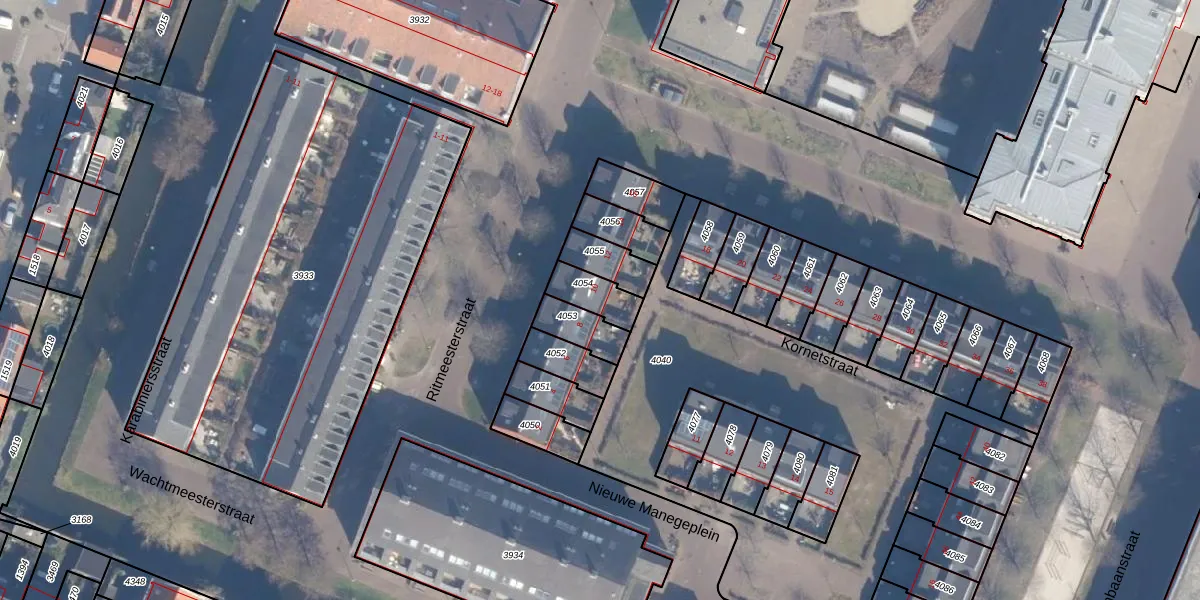 Het perceel waarop Kornetstraat 10 staat heeft een oppervlakte van 94 m². Dit is een klein perceel. De perceeloppervlakte wordt geregistreerd door het Kadaster. Gedetailleerde informatie over de maten van dit perceel kunt u vinden in het rapport Kadastrale kaart met maatvoering van Kornetstraat 10.