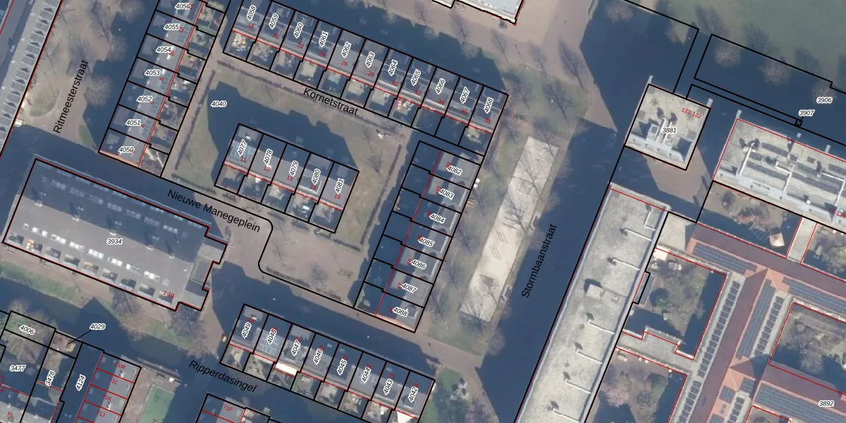 Kornetstraat 44 is gelegen op kadastraal perceel HLM01G4084. Deze kadastrale aanduiding is uniek en wordt gebruikt door het Kadaster om eigendomsrechten en andere zakelijke rechten vast te leggen. Het perceel maakt onderdeel uit van de kadastrale gemeente Haarlem.