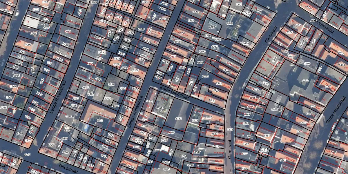 Het perceel waarop Korte Gierstraat 5 staat heeft een oppervlakte van 72 m². Dit is een klein perceel. De perceeloppervlakte wordt geregistreerd door het Kadaster. Gedetailleerde informatie over de maten van dit perceel kunt u vinden in het rapport Kadastrale kaart met maatvoering van Korte Gierstraat 5.