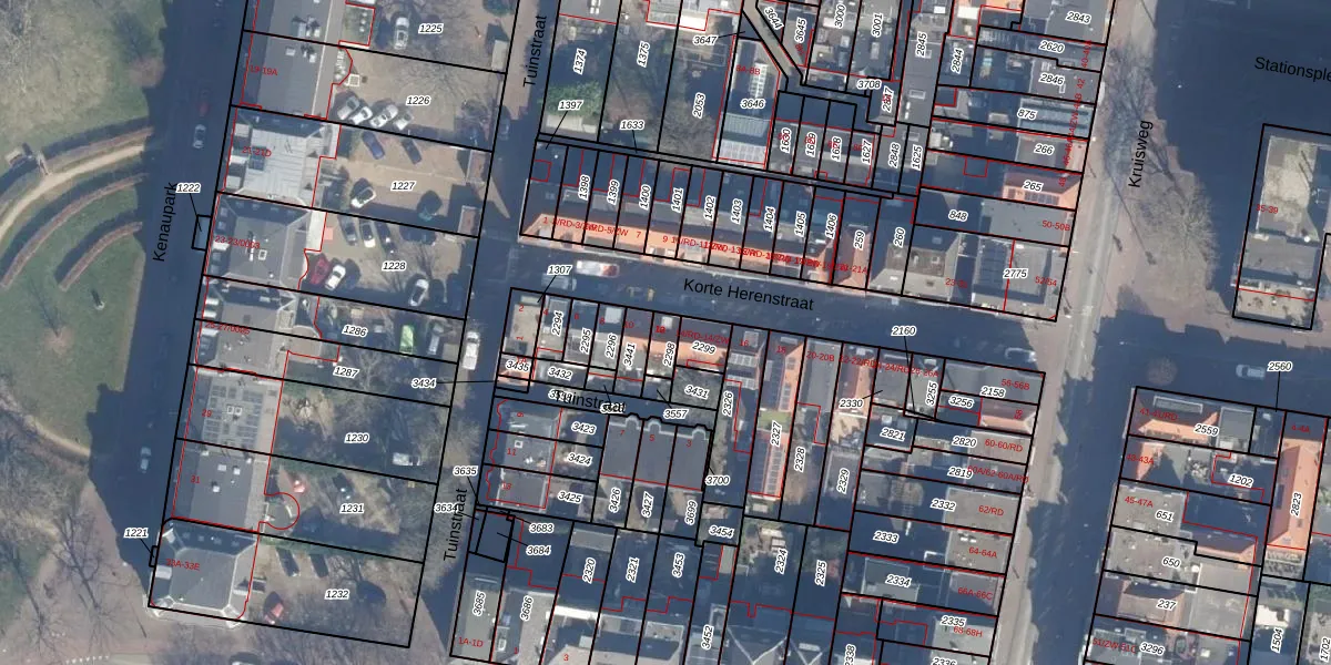 Het perceel waarop Korte Herenstraat 12 staat heeft een oppervlakte van 40 m². Dit is een klein perceel. De perceeloppervlakte wordt geregistreerd door het Kadaster. Gedetailleerde informatie over de maten van dit perceel kunt u vinden in het rapport Kadastrale kaart met maatvoering van Korte Herenstraat 12.
