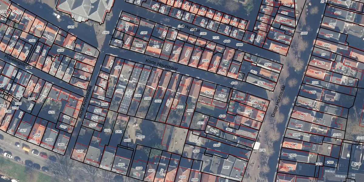 Korte Houtstraat 18-RD is gelegen op kadastraal perceel HLM01C4502. Deze kadastrale aanduiding is uniek en wordt gebruikt door het Kadaster om eigendomsrechten en andere zakelijke rechten vast te leggen. Het perceel maakt onderdeel uit van de kadastrale gemeente Haarlem.