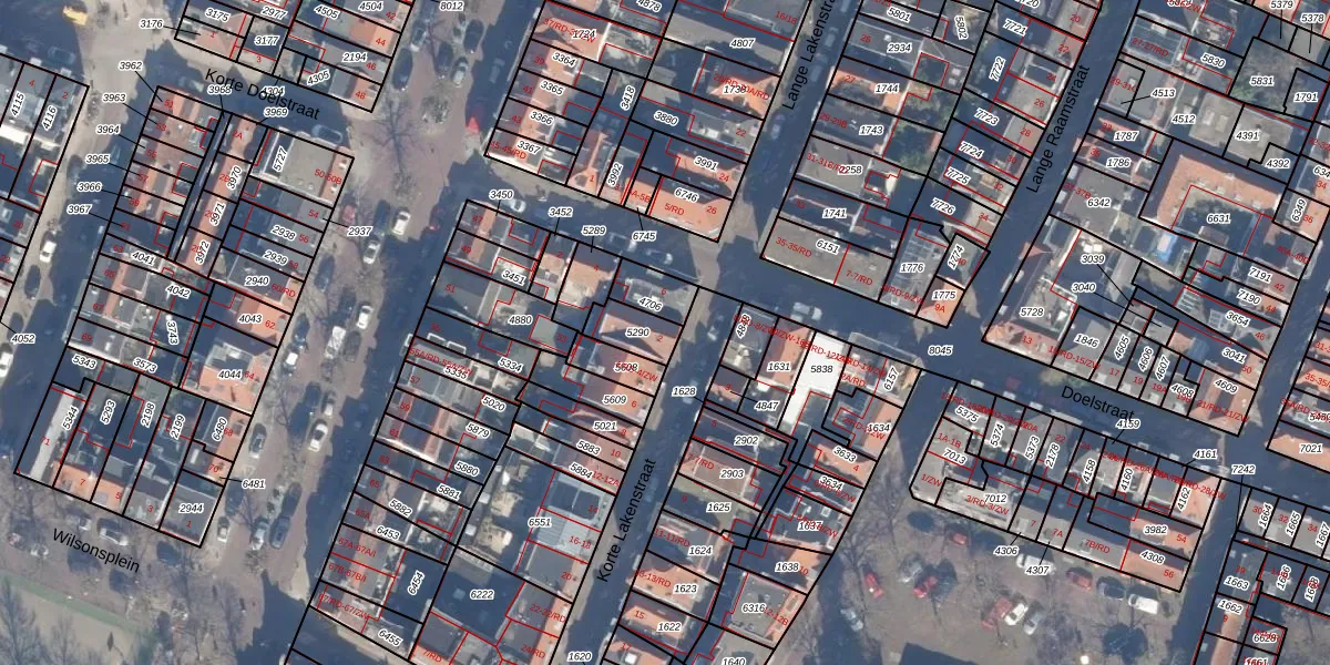 Gebruik de zoekbalk of klik op een perceel voor informatie over de adressen binnen dit perceel.