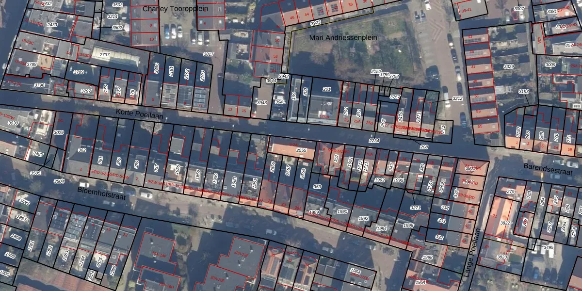 Het perceel waarop Korte Poellaan 2 staat heeft een oppervlakte van 98 m². Dit is een klein perceel. De perceeloppervlakte wordt geregistreerd door het Kadaster. Gedetailleerde informatie over de maten van dit perceel kunt u vinden in het rapport Kadastrale kaart met maatvoering van Korte Poellaan 2.