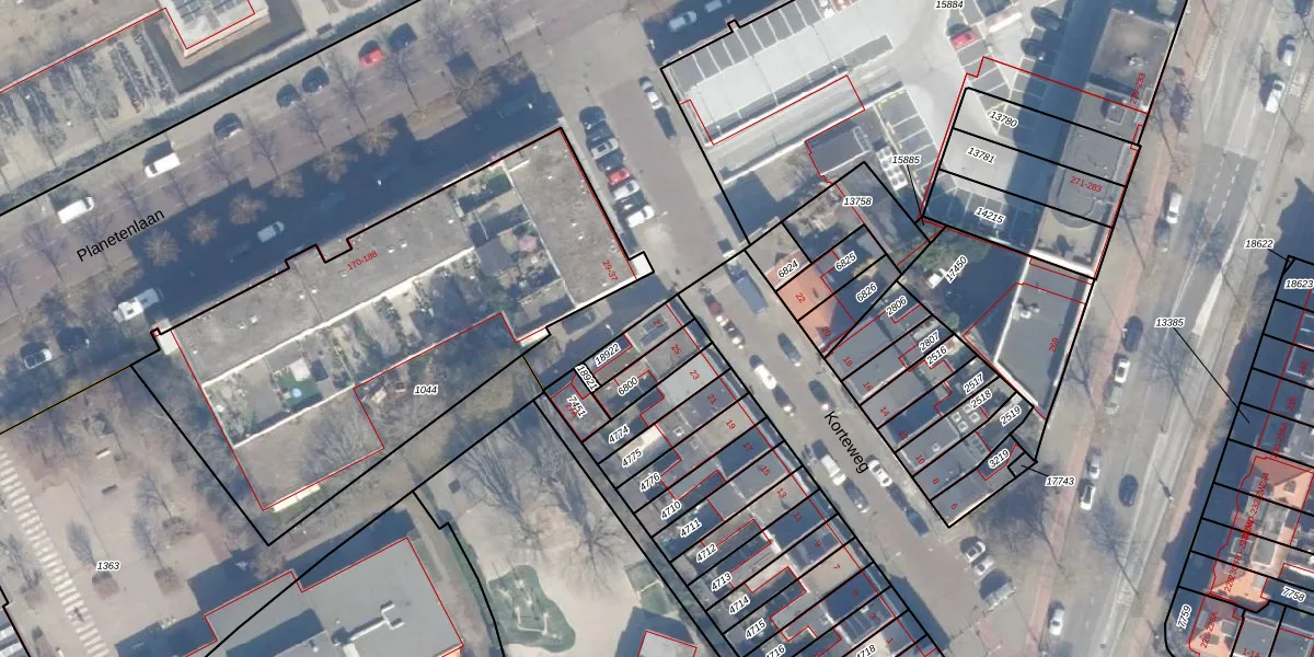 Gebruik de zoekbalk of klik op een perceel voor informatie over de adressen binnen dit perceel.