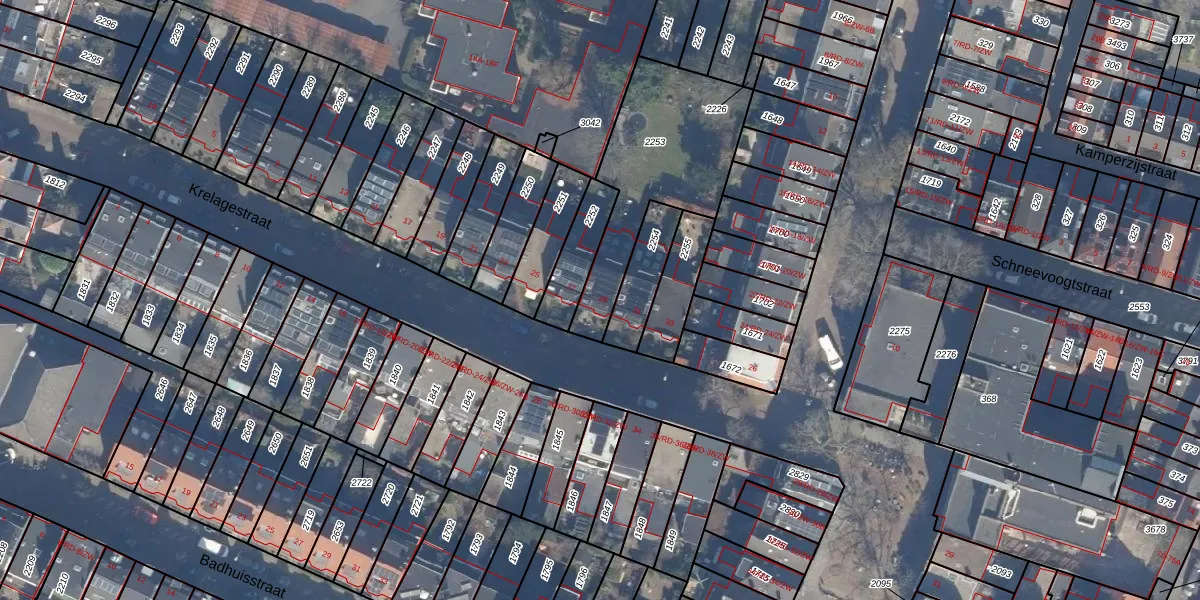 Het perceel waarop Krelagestraat 29 staat heeft een oppervlakte van 608 m². Dit is een groot perceel. De perceeloppervlakte wordt geregistreerd door het Kadaster. Gedetailleerde informatie over de maten van dit perceel kunt u vinden in het rapport Kadastrale kaart met maatvoering van Krelagestraat 29.