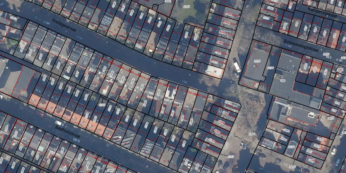Krelagestraat 32-ZW is gelegen op kadastraal perceel HLM01K1846. Deze kadastrale aanduiding is uniek en wordt gebruikt door het Kadaster om eigendomsrechten en andere zakelijke rechten vast te leggen. Het perceel maakt onderdeel uit van de kadastrale gemeente Haarlem.