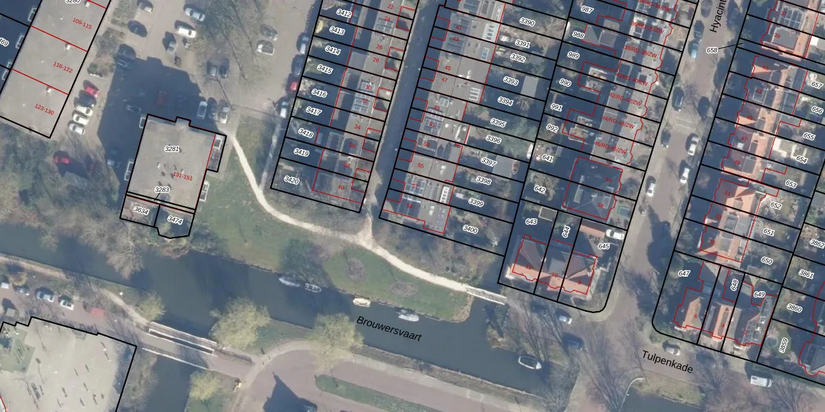 Het adres ligt op het perceel HLM02-T-3400, dat zich in de kadastrale gemeente Haarlem bevindt. Het perceel is 230 m² groot. Dat is kleiner dan de gemiddelde perceeloppervlakte in Haarlem, dat op 1123,97 m² ligt. De grootste perceeloppervlakte in de kadastrale gemeente is 46,4 ha. De kleinste oppervlakte bedraagt 0 m². Er zijn geen andere adressen aanwezig op het perceel. De laatste wijziging in het de Basisregistratie Kadaster (BRK) was op 05-09-2001.