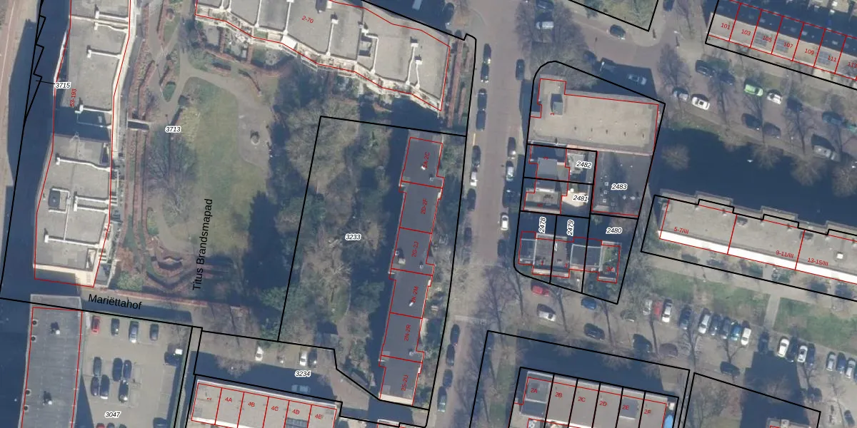 Het adres is gelegen op perceel 3233 in de sectie P en de kadastrale gemeente Haarlem. De kadastrale aanduiding is aldus HLM02-P-3233. Het perceel is met 2156 m² relatief groot. Het gemiddelde ligt in de kadastrale gemeente Haarlem op 1124,3 m². Het grootste perceel in de kadastrale gemeente is 46,4 ha. Het kleinste perceel heeft een oppervlakte van 0 m². Op het perceel liggen in totaal 18 adressen. De laatste wijziging in het de Basisregistratie Kadaster (BRK) was op 04-03-2013.