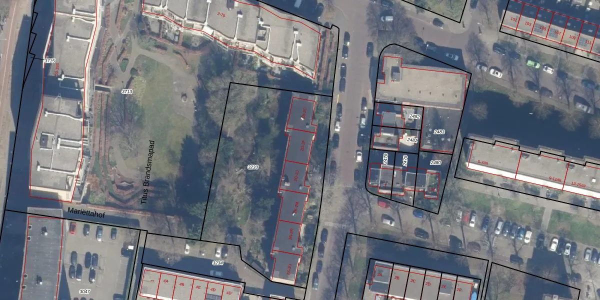 Het adres is gelegen op perceel 3233 in de sectie P en de kadastrale gemeente Haarlem. De kadastrale aanduiding is aldus HLM02-P-3233. Het perceel is met 2156 m² relatief groot. Het gemiddelde ligt in de kadastrale gemeente Haarlem op 1124,3 m². Het grootste perceel in de kadastrale gemeente is 46,4 ha. Het kleinste perceel heeft een oppervlakte van 0 m². Op het perceel liggen in totaal 18 adressen. In de Basisregistratie Kadaster (BRK) werden de grenzen van het perceel geregistreerd op 04-03-2013.