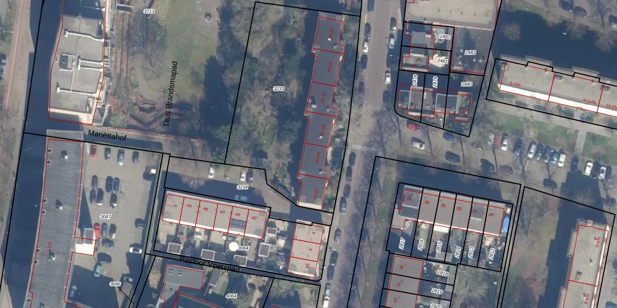 Het adres is gelegen op perceel 3233 in de sectie P en de kadastrale gemeente Haarlem. De kadastrale aanduiding is aldus HLM02-P-3233. Het perceel is met 2156 m² relatief groot. Het gemiddelde ligt in de kadastrale gemeente Haarlem op 1123,97 m². Het grootste perceel in de kadastrale gemeente is 46,4 ha. Het kleinste perceel heeft een oppervlakte van 0 m². Er zijn 18 adressen aanwezig op het perceel. De laatste wijziging in het de Basisregistratie Kadaster (BRK) was op 04-03-2013.