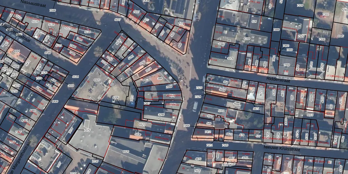 Het perceel waarop Kruisstraat 16 staat heeft een oppervlakte van 85 m². Dit is een klein perceel. De perceeloppervlakte wordt geregistreerd door het Kadaster. Gedetailleerde informatie over de maten van dit perceel kunt u vinden in het rapport Kadastrale kaart met maatvoering van Kruisstraat 16.