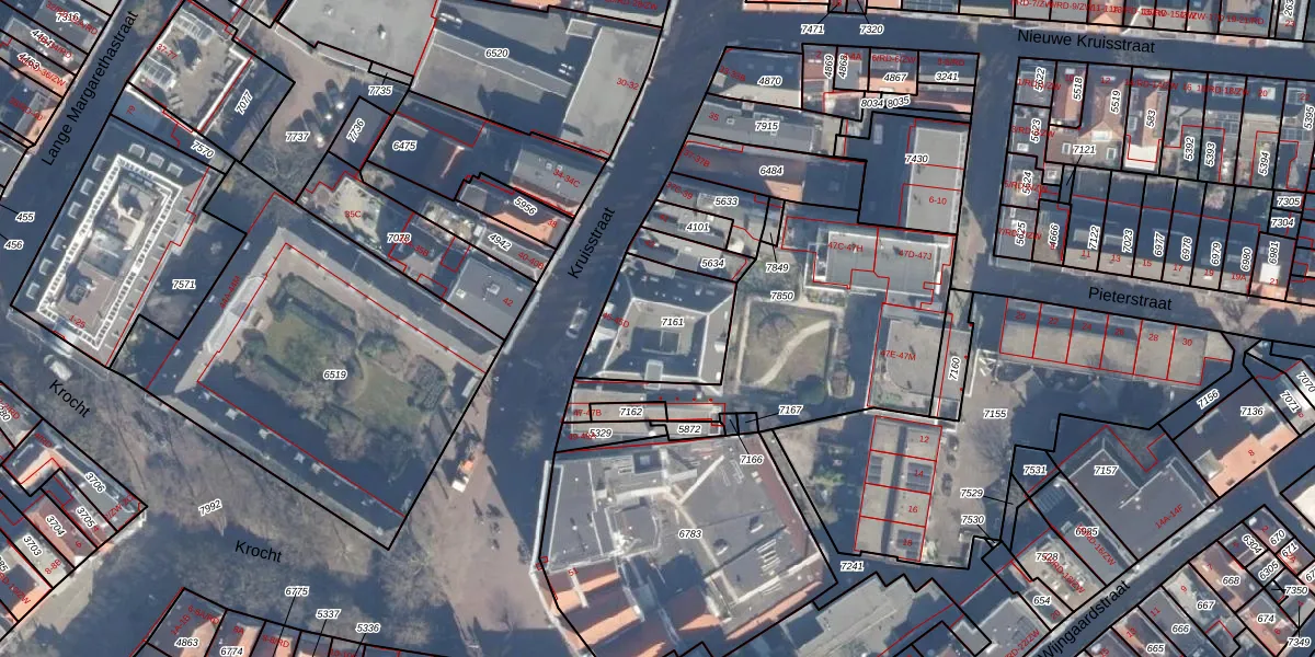 Het perceel waarop Kruisstraat 45-C staat heeft een oppervlakte van 330 m². Dit is een groot perceel. De perceeloppervlakte wordt geregistreerd door het Kadaster. Gedetailleerde informatie over de maten van dit perceel kunt u vinden in het rapport Kadastrale kaart met maatvoering van Kruisstraat 45-C.