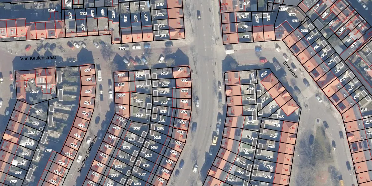 Gebruik de zoekbalk of klik op een perceel voor informatie over de adressen binnen dit perceel.