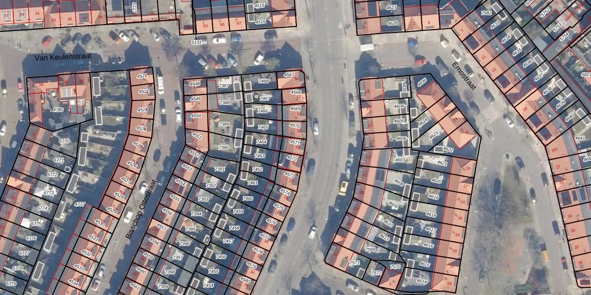 Gebruik de zoekbalk of klik op een perceel voor informatie over de adressen binnen dit perceel.