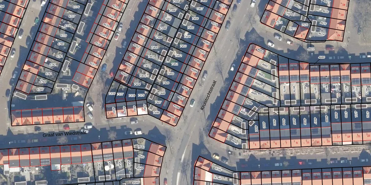 Gebruik de zoekbalk of klik op een perceel voor informatie over de adressen binnen dit perceel.